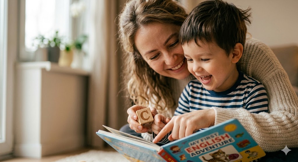Самый распространённый вопрос от родителей: «С чего начать?» Ответ на него неожиданный: не начинайте. Просто начните окружать ребёнка языком. Включите английские песни фоном. Пусть любимый мультик зазвучит на английском. Назовите кота в игре «cat». Этого достаточно, чтобы мозг зафиксировал: этот язык существует, он звучит, он безопасен.